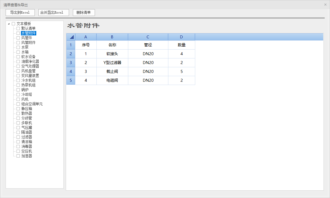 执行【清单结果】命令,弹出生成的【清单查看&导出】对话框。对话框如下: