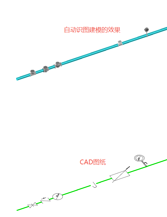 模型中已生成三维水管构件后,再进行水阀和仪表构件的识图翻模操作。