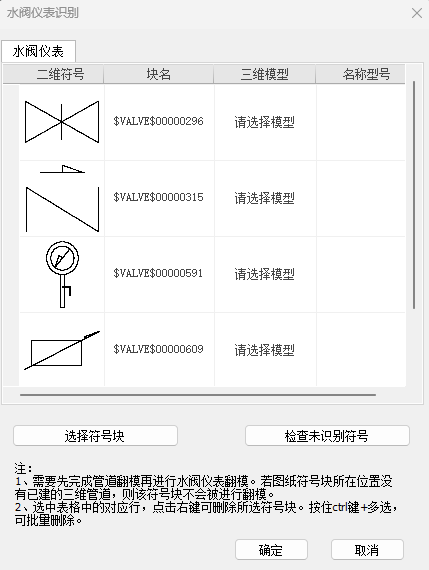 3.回到界面中,选择每个符号块所对应的水阀仪表的三维模型构件。