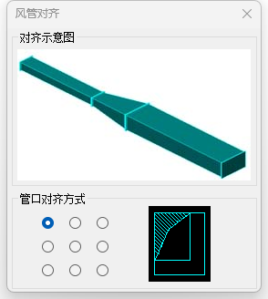 点击【建模】-【风管】-【风管对齐】,风管对齐如所示,在页面中有九种对齐方式可以选择。