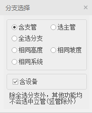 【全选分支】:追索选择与所选对象存在连接关系的机电管线及设备。(含立管)