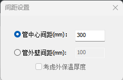 1.点击Ribbon菜单,启动命令,弹出间距设置界面,界面选择设置管中心或管外壁间距,并输入间距值;