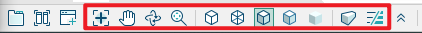 视图工具条在项目窗口的左下方,从左到右依次为:充满显示、平移视图、三维动态观察、局部放大、隐藏线模式、线框模式、着色模式带轮廓、着色模式原始色、着色模式无轮廓、正交模式、隐藏线宽。