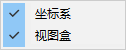 在工具条的右侧,点击上箭头可显示二级菜单,可设置坐标系和视图盒的显隐。