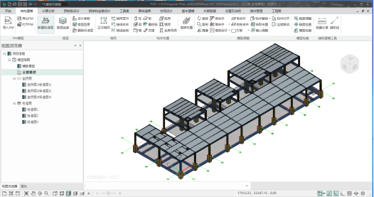 PKPM-PS软件界面总体布局如图1.4所示。用户操作界面为Windows窗口界面,用户可以随意改变窗口的大小、位置和形状,并可在软件运行过程中运行Windows 桌面上的其他程序,实现多进程工作方式。用户菜单采用流行的Ribbon菜单,形象直观。