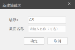 后,将弹出新建墙截面对话框,如图2.28所示。可在该对话框中输入墙厚。截面名称为方便用户管理截面设置,可不输入。点击确认后即可新建截面。