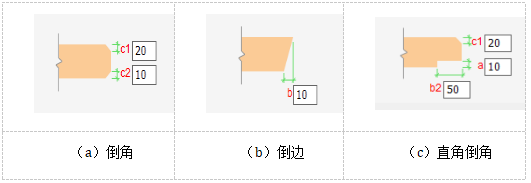 包括【倒角】【倒边】和【直角倒角】三个类型。其参数如图4.14所示。