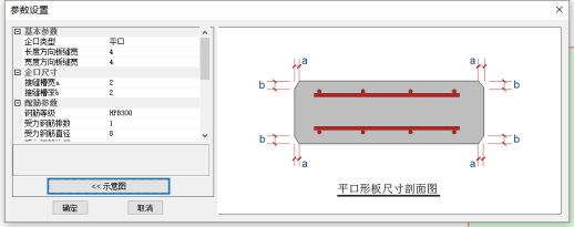 单击“参数设置”,弹出墙板参数设置对话框。依据用户选择的板型类别,对话框中会显示不同板型的参数及示意图以供调整,如图 4.41所示。点“确定”保存参数设置,点“取消”恢复默认设置(拆分模式)或原板参数(修改模式)。