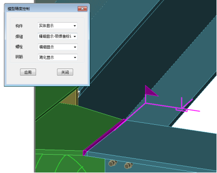 2) 焊缝显示分为:精细显示,简化显示,精细显示带焊接标记和隐藏;