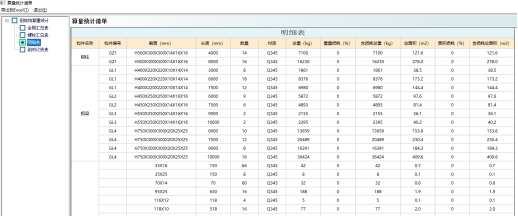 根据钢构件的统计方式,自动统计工程量,自动生成报表。