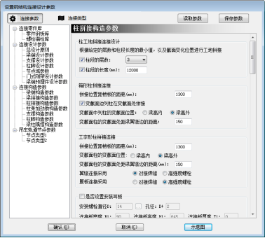 3) 柱拼接构造参数