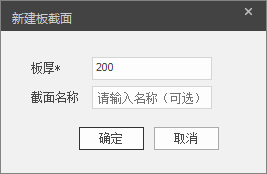 后,将弹出新建板截面对话框,如图所示。可在该对话框中输入厚板。截面名称为方便用户管理截面设置,可不输入。点击确认后即可新建截面。