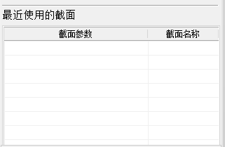 该功能允许用户快速调用最近数次被布置的截面,减少从截面下拉栏中选择截面的概率,以提高建模效率。最近使用截面为列表形式,一般位于构件布置栏下方,分为“截面参数”和“截面名称”两列,如图所示。