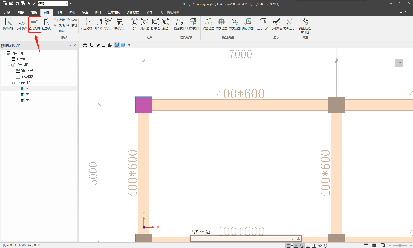 目录 搜索 展开 首页乘车路线版权与商标说明免责声明更新说明20242024R1.020232023R1.020222022R3.12022R3.02022R2.32022R2.22022R2.12022R2.02022R1.42022R1.32022R1.22022R1.0工作环境最低运行环境启动界面用户操作界面快速访问工具栏视图盒子模型操作视图区命令提示行项目浏览器属性面板多窗口显示设置视图工具条光照亮度三维坐标捕捉设置通用操作功能键右键菜单临时辅助线抬头工具栏追踪器弹出式编辑小面板注释注释工具逐点标注直径/半径标注弧长标注角度标注标高标注引出标注自动标注箭头标注二维工具线型二维工具通用文字单行文字多行文字通用表格协同设计构件级协同云链接参照模型底图参照合并工程链接模型链接P3D/PMODEL链接管理净高分析净高设置净高平面净高检查净高刷新碰撞检查碰撞检查碰撞列表碰撞结果基本建模图形平面实体工具布尔运算工作平面外部数据Python构件库组件库导入导出其他功能3D剖切工具快捷命令自动保存类型属性管理器增强过滤器正向设计专业功能建模识图建模导入DWG识别构件偏心调整梁平法识别结果查看卸载、移动DWG轴网定位上部结构布置柱布置梁布置斜杆布置墙布置板布置楼梯布置悬挑板布置墙洞布置板洞布置全房间洞布置梁加腋截面分色最近使用截面拾取和截面刷基础构件独立基础筏板地基梁柱墩桩基桩基承台楼层管理楼层组装全楼信息增/删标准层全楼移动工具测量长度测量角度编辑修改参数修改构件参数构件替换构件删除通用对齐梁板对齐基线对齐通用编辑工具相互打断相互裁切墙合并梁合并墙梁合并构件延伸组合层间编辑楼层复制局部复制模型调整模型检查精度检查精度调整计算与PKPM双向更新显示更新信息图纸图纸生成导出PDF/导出DWG图纸管理图块移动图纸批量管理图纸删除EasyBIM-S施工图出图流程视图视图属性视图裁剪框复制视图/标注跨视图复制生成图纸视口机制审查图纸识别智能审查结果查看和导出报告协同结构构件开洞管理显示显示构件构件颜色裁剪显示构件子类别管理显示管理全局显示样式构件可见性方案视图覆盖方案注释楼层表梁标注板标注 暂无相关搜索结果! 通用对齐 通用对齐可以实现在某一楼层中,梁、墙、柱构件沿某个选中边界的快捷对齐操作。 举例:边梁对齐边柱外皮以边梁对齐边柱外皮为例,点击通用对齐。命令行上方提示选择构件边,点击要对齐的构件边。命令行上方提示选择构件,选择要对齐的构件,按鼠标右键确认。此时边梁的外边缘均与边柱外皮对齐,如图所示。通用对齐的效果图如图所示。