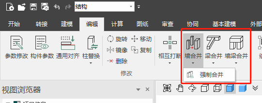 强制合并(墙)位于墙合并命令的下拉框中,如图所示。