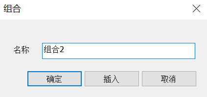 点击【组合】图标后屏幕弹出组合对话框,如图3.6-1所示,需要用户选择需要组合的构件,并且输入组合名称。点击【确定】成组,【插入】按钮为能够插入已成组的组合。