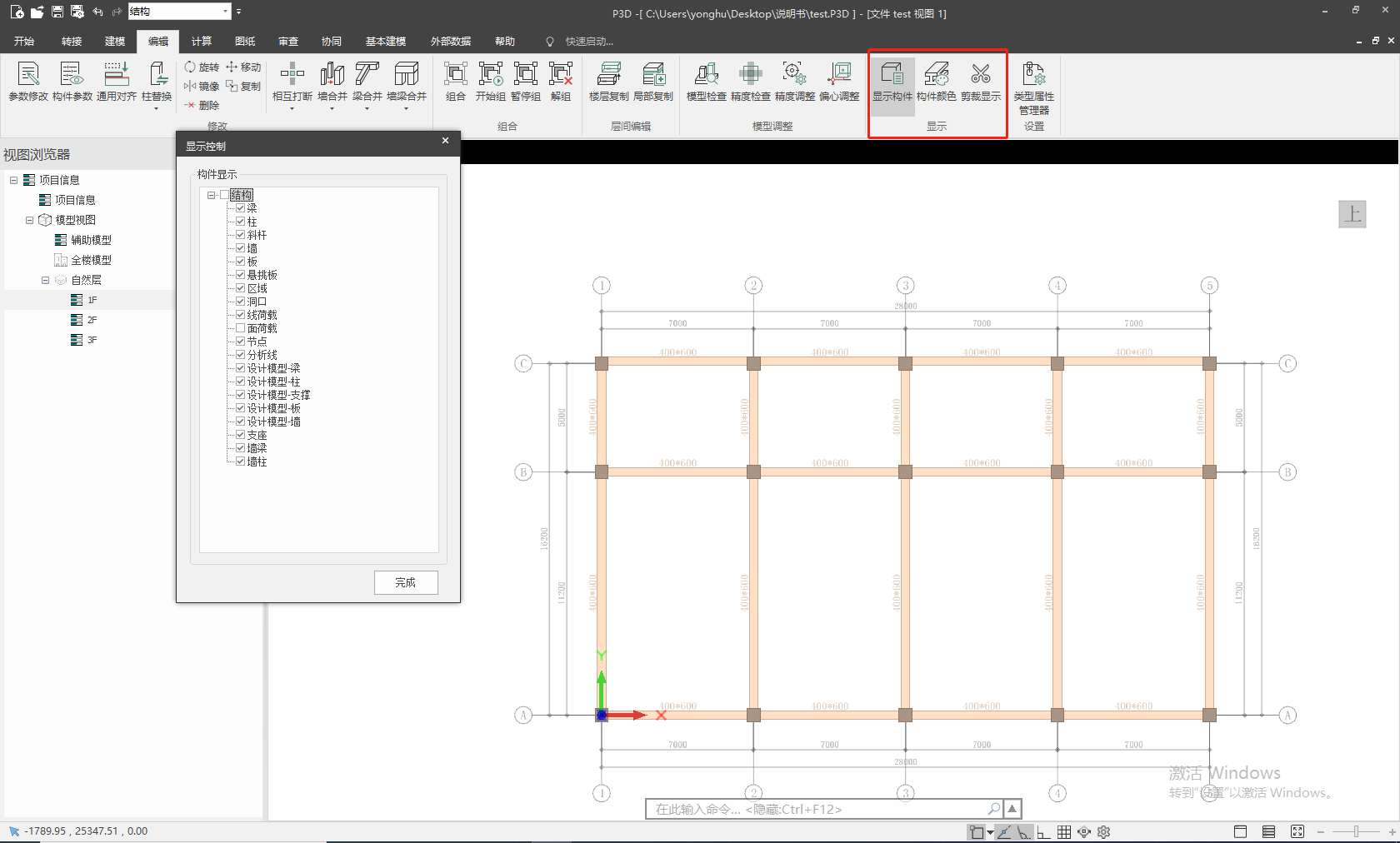 目录 搜索 展开 首页乘车路线版权与商标说明免责声明更新说明20242024R1.020232023R1.020222022R3.12022R3.02022R2.32022R2.22022R2.12022R2.02022R1.42022R1.32022R1.22022R1.0工作环境最低运行环境启动界面用户操作界面快速访问工具栏视图盒子模型操作视图区命令提示行项目浏览器属性面板多窗口显示设置视图工具条光照亮度三维坐标捕捉设置通用操作功能键右键菜单临时辅助线抬头工具栏追踪器弹出式编辑小面板注释注释工具逐点标注直径/半径标注弧长标注角度标注标高标注引出标注自动标注箭头标注二维工具线型二维工具通用文字单行文字多行文字通用表格协同设计构件级协同云链接参照模型底图参照合并工程链接模型链接P3D/PMODEL链接管理净高分析净高设置净高平面净高检查净高刷新碰撞检查碰撞检查碰撞列表碰撞结果基本建模图形平面实体工具布尔运算工作平面外部数据Python构件库组件库导入导出其他功能3D剖切工具快捷命令自动保存类型属性管理器增强过滤器正向设计专业功能建模识图建模导入DWG识别构件偏心调整梁平法识别结果查看卸载、移动DWG轴网定位上部结构布置柱布置梁布置斜杆布置墙布置板布置楼梯布置悬挑板布置墙洞布置板洞布置全房间洞布置梁加腋截面分色最近使用截面拾取和截面刷基础构件独立基础筏板地基梁柱墩桩基桩基承台楼层管理楼层组装全楼信息增/删标准层全楼移动工具测量长度测量角度编辑修改参数修改构件参数构件替换构件删除通用对齐梁板对齐基线对齐通用编辑工具相互打断相互裁切墙合并梁合并墙梁合并构件延伸组合层间编辑楼层复制局部复制模型调整模型检查精度检查精度调整计算与PKPM双向更新显示更新信息图纸图纸生成导出PDF/导出DWG图纸管理图块移动图纸批量管理图纸删除EasyBIM-S施工图出图流程视图视图属性视图裁剪框复制视图/标注跨视图复制生成图纸视口机制审查图纸识别智能审查结果查看和导出报告协同结构构件开洞管理显示显示构件构件颜色裁剪显示构件子类别管理显示管理全局显示样式构件可见性方案视图覆盖方案注释楼层表梁标注板标注 暂无相关搜索结果! 显示构件 显示构件显示构件支持设置构件显示状态,可将不需要类型的构件取消显示以达到简化模型视图的效果。 使用显示构件点击【显示构件】图标后弹出显示控制对话框,如图所示。通过勾选/取消勾选控制构件类型是否在视图中显示。请注意:该功能的控制范围为所有楼层。