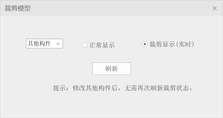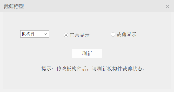 目录 搜索 展开 首页乘车路线版权与商标说明免责声明更新说明20242024R1.020232023R1.020222022R3.12022R3.02022R2.32022R2.22022R2.12022R2.02022R1.42022R1.32022R1.22022R1.0工作环境最低运行环境启动界面用户操作界面快速访问工具栏视图盒子模型操作视图区命令提示行项目浏览器属性面板多窗口显示设置视图工具条光照亮度三维坐标捕捉设置通用操作功能键右键菜单临时辅助线抬头工具栏追踪器弹出式编辑小面板注释注释工具逐点标注直径/半径标注弧长标注角度标注标高标注引出标注自动标注箭头标注二维工具线型二维工具通用文字单行文字多行文字通用表格协同设计构件级协同云链接参照模型底图参照合并工程链接模型链接P3D/PMODEL链接管理净高分析净高设置净高平面净高检查净高刷新碰撞检查碰撞检查碰撞列表碰撞结果基本建模图形平面实体工具布尔运算工作平面外部数据Python构件库组件库导入导出其他功能3D剖切工具快捷命令自动保存类型属性管理器增强过滤器正向设计专业功能建模识图建模导入DWG识别构件偏心调整梁平法识别结果查看卸载、移动DWG轴网定位上部结构布置柱布置梁布置斜杆布置墙布置板布置楼梯布置悬挑板布置墙洞布置板洞布置全房间洞布置梁加腋截面分色最近使用截面拾取和截面刷基础构件独立基础筏板地基梁柱墩桩基桩基承台楼层管理楼层组装全楼信息增/删标准层全楼移动工具测量长度测量角度编辑修改参数修改构件参数构件替换构件删除通用对齐梁板对齐基线对齐通用编辑工具相互打断相互裁切墙合并梁合并墙梁合并构件延伸组合层间编辑楼层复制局部复制模型调整模型检查精度检查精度调整计算与PKPM双向更新显示更新信息图纸图纸生成导出PDF/导出DWG图纸管理图块移动图纸批量管理图纸删除EasyBIM-S施工图出图流程视图视图属性视图裁剪框复制视图/标注跨视图复制生成图纸视口机制审查图纸识别智能审查结果查看和导出报告协同结构构件开洞管理显示显示构件构件颜色裁剪显示构件子类别管理显示管理全局显示样式构件可见性方案视图覆盖方案注释楼层表梁标注板标注 暂无相关搜索结果! 裁剪显示 裁剪显示点击【剪裁显示】后会弹出裁剪模型对话框,模型提供板构件和其他构件裁剪,正常显示、剪裁显示(实时)两种显示模式,用户可以根据展示需要选择构件和显示模式,点击【刷新】自行切换。 此界面功能对于全楼及自然层单层均生效。裁剪显示和正常显示的裁剪效果如图所示。 裁剪显示: 正常显示: