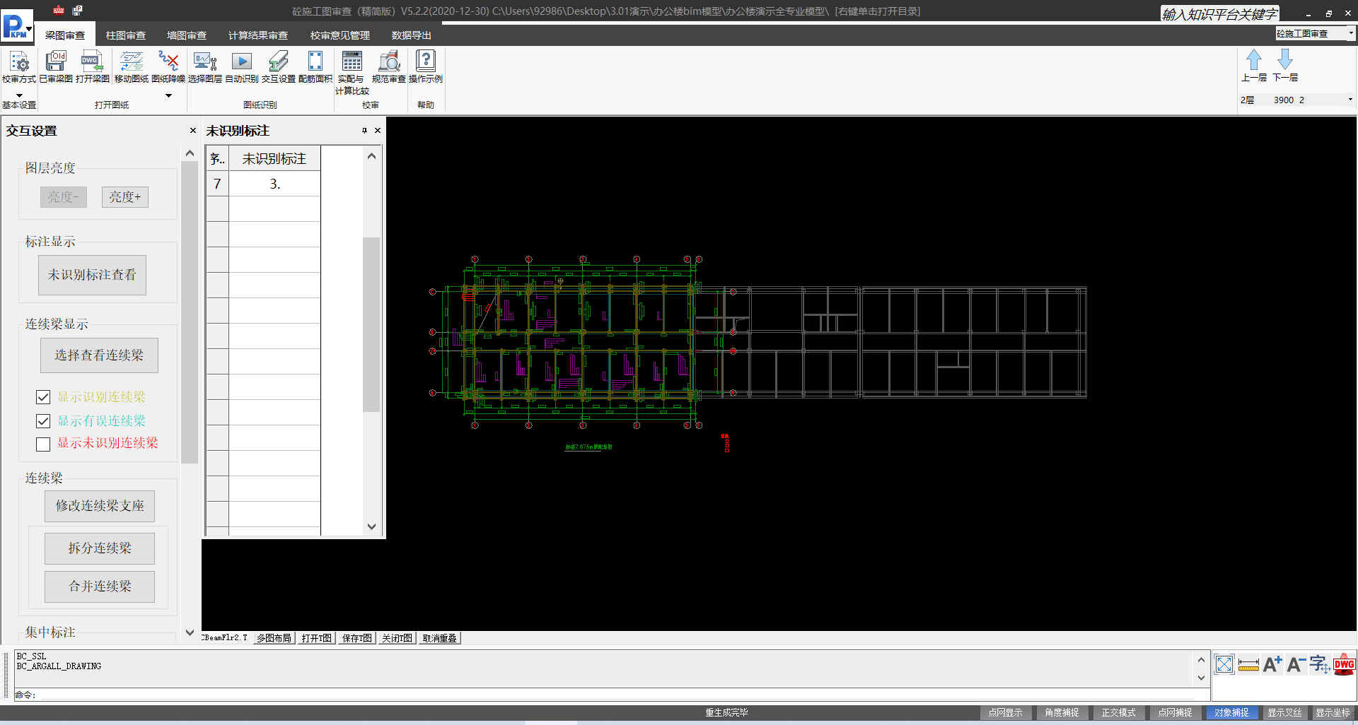 图纸识别功能可识别的结构专业图纸类型包括梁、柱、墙施工图纸中的图形、文字,支持国标平法标注。对于识别效果不理想的图纸,支持用户手动修改和指定。经过识别的图纸数据将与结构计算结果打包,生成BIM审查数据格式,例如.XDB格式。