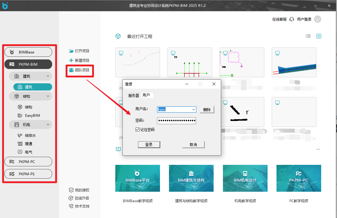 图2 团队项目登录