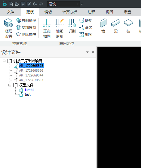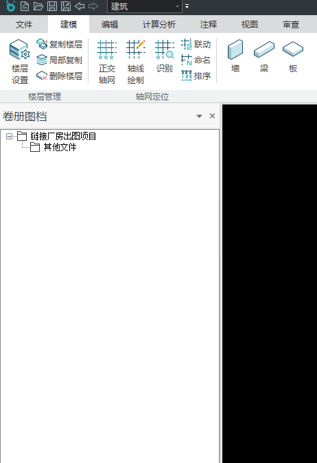 - 新建或打开团队项目中的模型后,视图左侧可查看模型所在项目的卷册图档和设计文件,如图4。