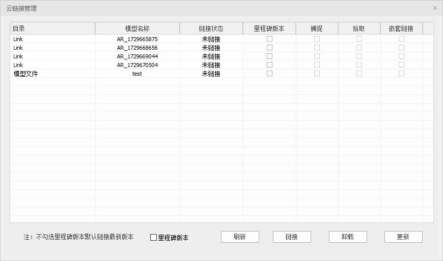 - 在设计文件中可查看当前项目中的所有模型,灰色模型为未映射文件,本地无副本;绿色模型为映射文件,本地存在p3d文件副本;蓝色高亮模型为当前打开的模型。