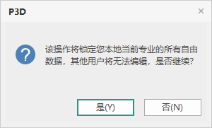目录 搜索 展开 首页乘车路线网页端管理系统项目总览用户管理用户组管理项目管理项目管理文件夹管理模型管理系统设置服务器状态日志查看个人设置客户端协同工作客户端协同工作打开团队项目解锁上传上传下载权限管理批量锁定锁定当前专业查看构件权限恢复原色显示打开项目消息服务端综合管理系统服务器中安装的程序及流程协同服务配置小工具、打开协同管理系统配置协同服务、清空缓存、退出 暂无相关搜索结果! 锁定当前专业 功能介绍该功能可对模型中的当前专业的构件进行全部锁定,一般用于构件编辑、当前专业全楼操作等,例如全楼移动。 使用说明操作步骤 点击【协同】-【锁定当前专业】工具, 弹出确认对话框如图1,点击【是】, 软件执行锁定操作,完成后左下命令行提示锁定成功,如图2。 图1 锁定当前专业 图2 锁定进度对话框