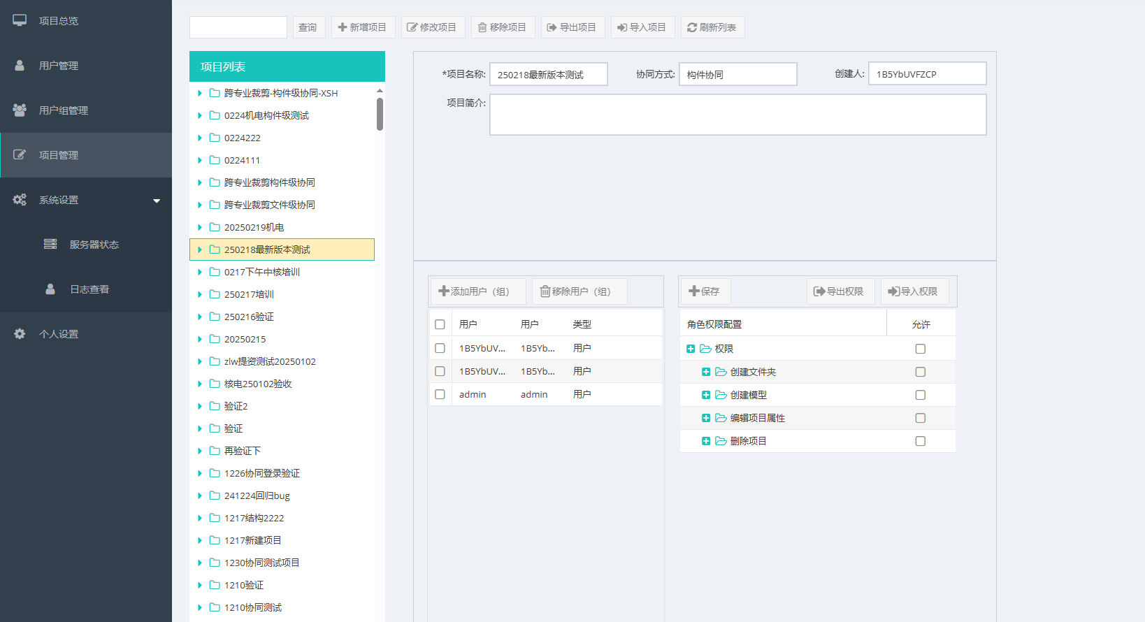目录 搜索 展开 首页乘车路线网页端管理系统项目总览用户管理用户组管理项目管理项目管理文件夹管理模型管理系统设置服务器状态日志查看个人设置客户端协同工作客户端协同工作打开团队项目解锁上传上传下载权限管理批量锁定锁定当前专业查看构件权限恢复原色显示打开项目消息服务端综合管理系统服务器中安装的程序及流程协同服务配置小工具、打开协同管理系统配置协同服务、清空缓存、退出 暂无相关搜索结果! 项目管理 功能介绍项目管理可以对项目进行分级管理,包括项目管理、文件夹管理和模型管理三个层级。 使用说明登录页面后点击左侧项目管理按钮,显示页面如图1。 图1 项目管理界面