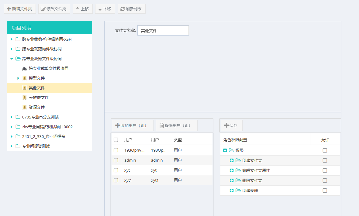 文件夹管理是对项目中的文件夹层级进行管理,包括文件夹增删计和用户管理。