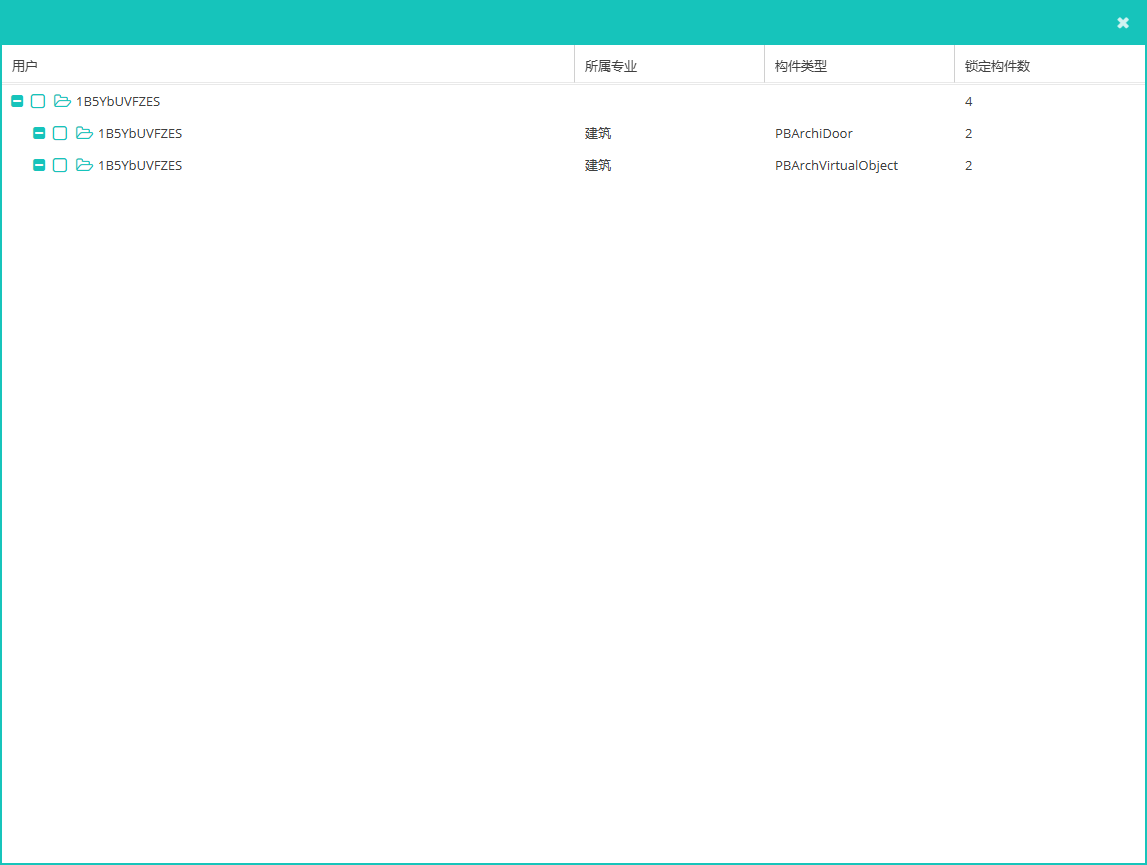 注:选择角色成员时,只能选择本项目中的成员<锁定构件查看>:点击【锁定构件查看】按钮,弹窗中可显示此模型中被锁定的构件专业、构件类型和锁定构件数,如图5;