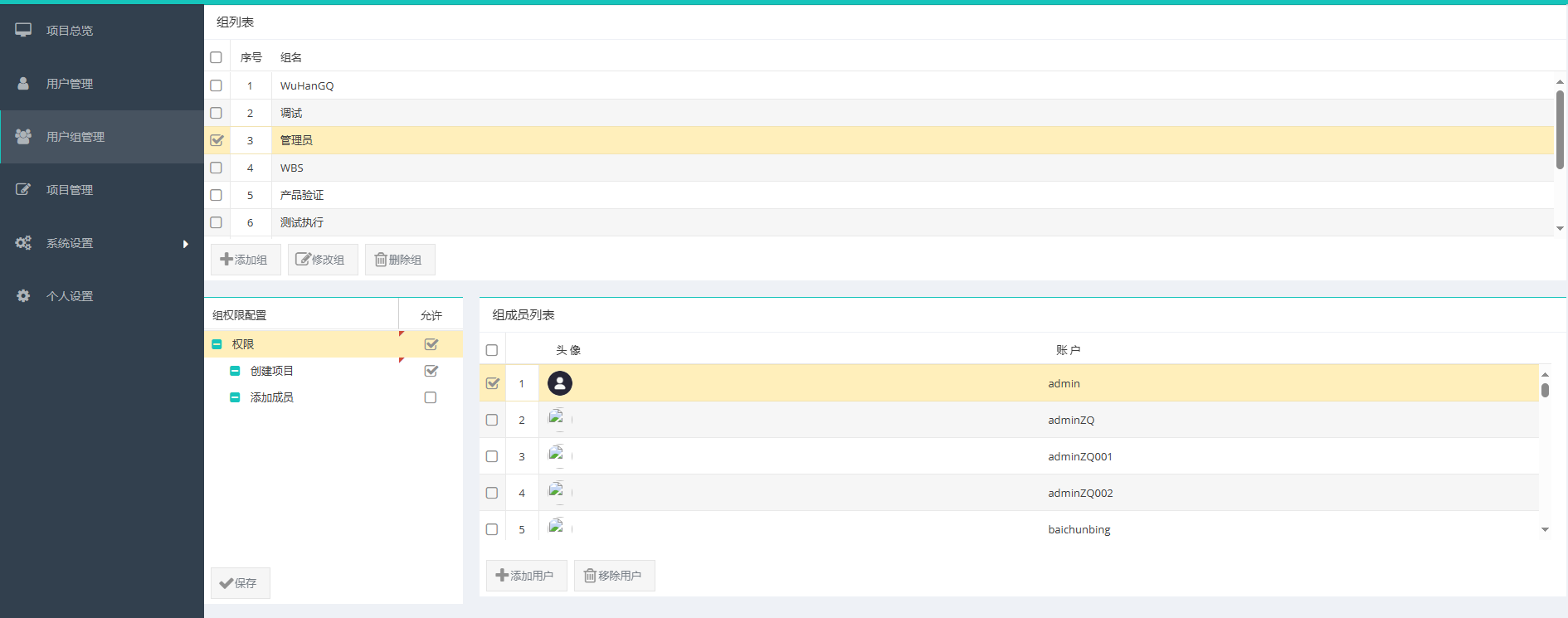 用户组管理是管理员对项目团队成员进行分组批量管理。
