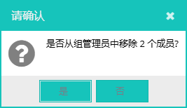 - <移除用户>:勾选需要移除组的用户,支持多选,点击移除用户按钮,弹出对话框如图4,点击确定后从用户组移除选中成员。