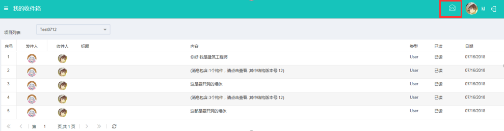 - <消息查看>:头像的左边是消息按钮,单击会看到与登录用户有关的消息记录,即登录用户发送的或接收的全部消息,如图3;