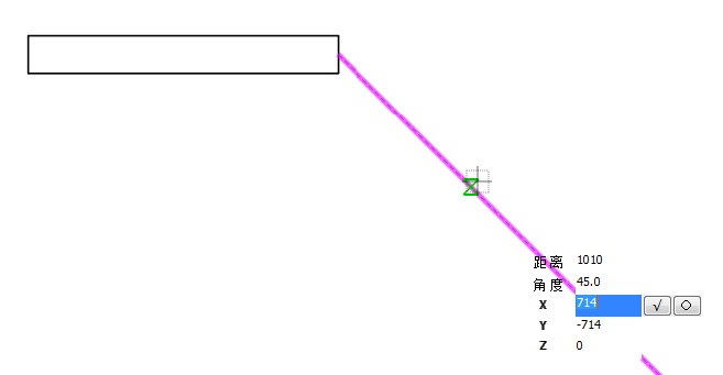 在执行命令绘制过程中,会在光标位置出现跟踪光标位置移动几何坐标小面板。可在此小面板中提示当前绘制的尺寸、角度等,并可实现数据的输入。提示绘制过程中如下图所示。