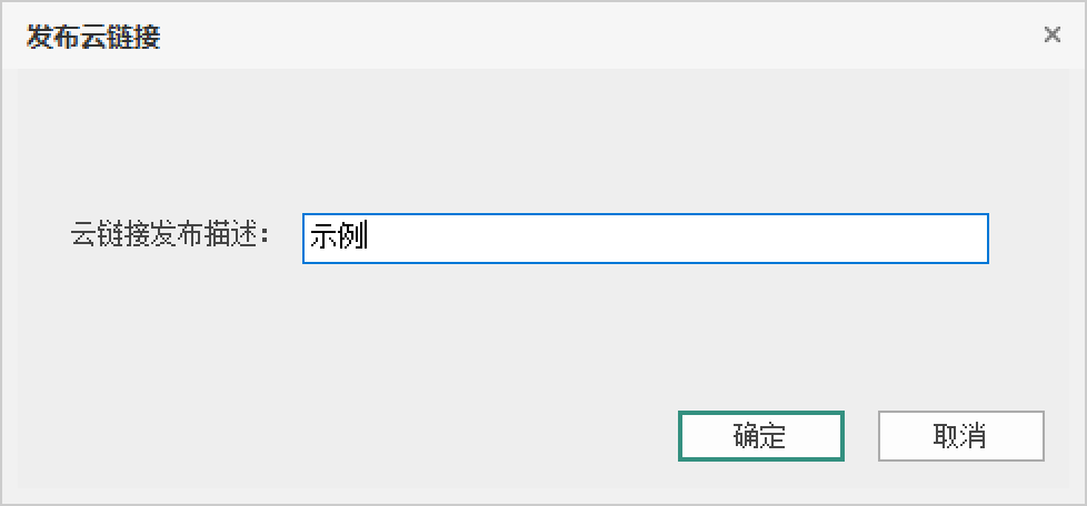 - 在协同环境下启动本功能,将显示对话框。对话框内提示输入“云链接发布描述”,该备注为可选填写。