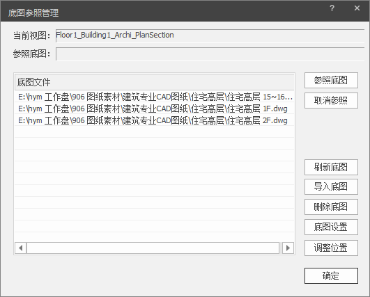 - 参照底图:选中导入的底图文件,通过点击“底图参照”按钮,将选中的底图显示到当前工作楼层。