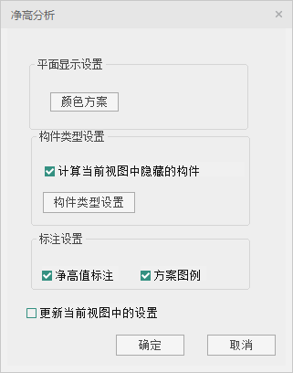 目录 搜索 展开 工作环境最低运行环境启动界面用户操作界面快速访问工具栏视图盒子模型操作视图区命令提示行项目浏览器属性面板多窗口显示设置视图工具条光照亮度三维坐标捕捉设置通用操作功能键右键菜单临时辅助线抬头工具栏追踪器弹出式编辑小面板注释注释工具逐点标注直径/半径标注弧长标注角度标注标高标注引出标注自动标注箭头标注二维工具线型二维工具通用文字单行文字多行文字通用表格协同设计构件级协同云链接参照模型底图参照合并工程链接模型链接P3D/PMODEL链接管理净高分析净高设置净高平面净高检查净高刷新碰撞检查碰撞检查碰撞列表碰撞结果基本建模图形平面实体工具布尔运算工作平面外部数据Python构件库组件库导入导出其他功能3D剖切工具快捷命令自动保存类型属性管理器增强过滤器正向设计 暂无相关搜索结果! 净高设置 净高设置 对净高平面出图颜色方案、标注等设置。 菜单位置 菜单位置如下图所示: 操作流程 点击菜单,弹出“净高设置”界面,如下图所示。 点击界面上的“颜色方案”按钮,可进行出图时候根据净高值结果,进行所在区域出图时填充颜色的设置。如下图所示。 点击“构件类型设置”按钮,可自行选择当前楼层参与净高值计算的构件。如下图所示。 注:建筑和结构专业的板、梁等构件,无论是否勾选,均默认参与各自区域的净高值计算。