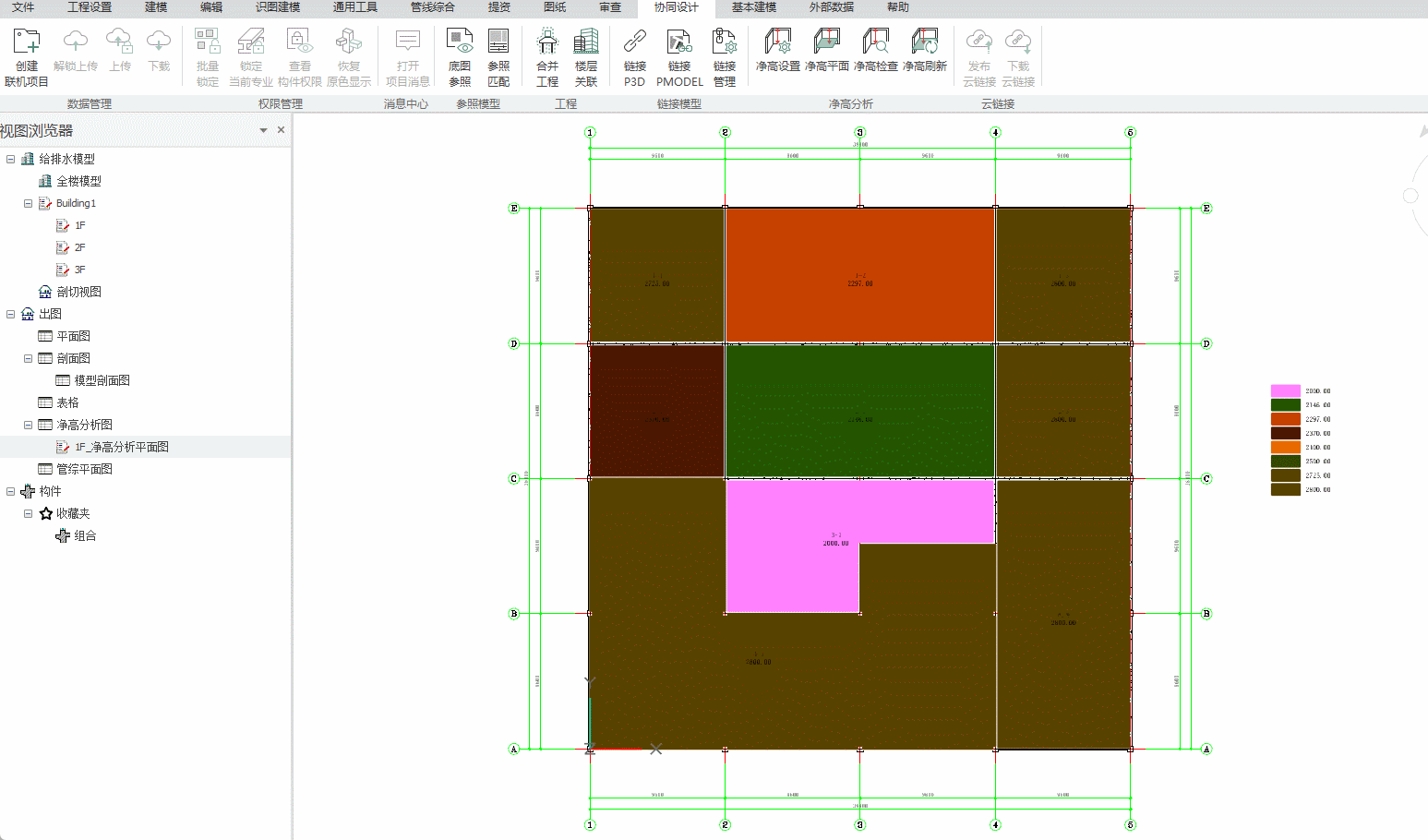 目录 搜索 展开 工作环境最低运行环境启动界面用户操作界面快速访问工具栏视图盒子模型操作视图区命令提示行项目浏览器属性面板多窗口显示设置视图工具条光照亮度三维坐标捕捉设置通用操作功能键右键菜单临时辅助线抬头工具栏追踪器弹出式编辑小面板注释注释工具逐点标注直径/半径标注弧长标注角度标注标高标注引出标注自动标注箭头标注二维工具线型二维工具通用文字单行文字多行文字通用表格协同设计构件级协同云链接参照模型底图参照合并工程链接模型链接P3D/PMODEL链接管理净高分析净高设置净高平面净高检查净高刷新碰撞检查碰撞检查碰撞列表碰撞结果基本建模图形平面实体工具布尔运算工作平面外部数据Python构件库组件库导入导出其他功能3D剖切工具快捷命令自动保存类型属性管理器增强过滤器正向设计 暂无相关搜索结果! 净高刷新 净高刷新 针对已生成完毕的净高平面图,根据最新保存的颜色方案设置、标注和图例设置,对该图上各个净高区域的净高值重新计算和刷新覆盖出图。 菜单位置 菜单位置界面如下图所示 操作示例 操作:打开净高平面图,点击“净高刷新”菜单后。程序自动根据最新保存的颜色方案设置、标注和图例设置,对该图上各个净高区域的净高值重新计算和刷新覆盖出图。