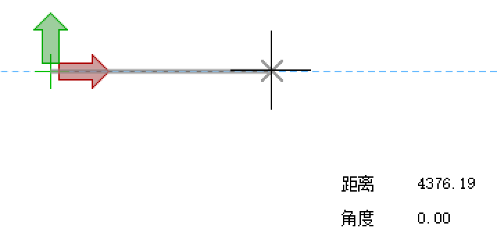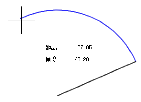 左键点击第一点以确定弧线起点位置。绘制第一点之后,支持在追踪器中输入圆弧终点相对于起点的距离和角度。此时移动光标,可看到黑色的直线预览。左键点击以确定圆弧终点(第二点)位置。