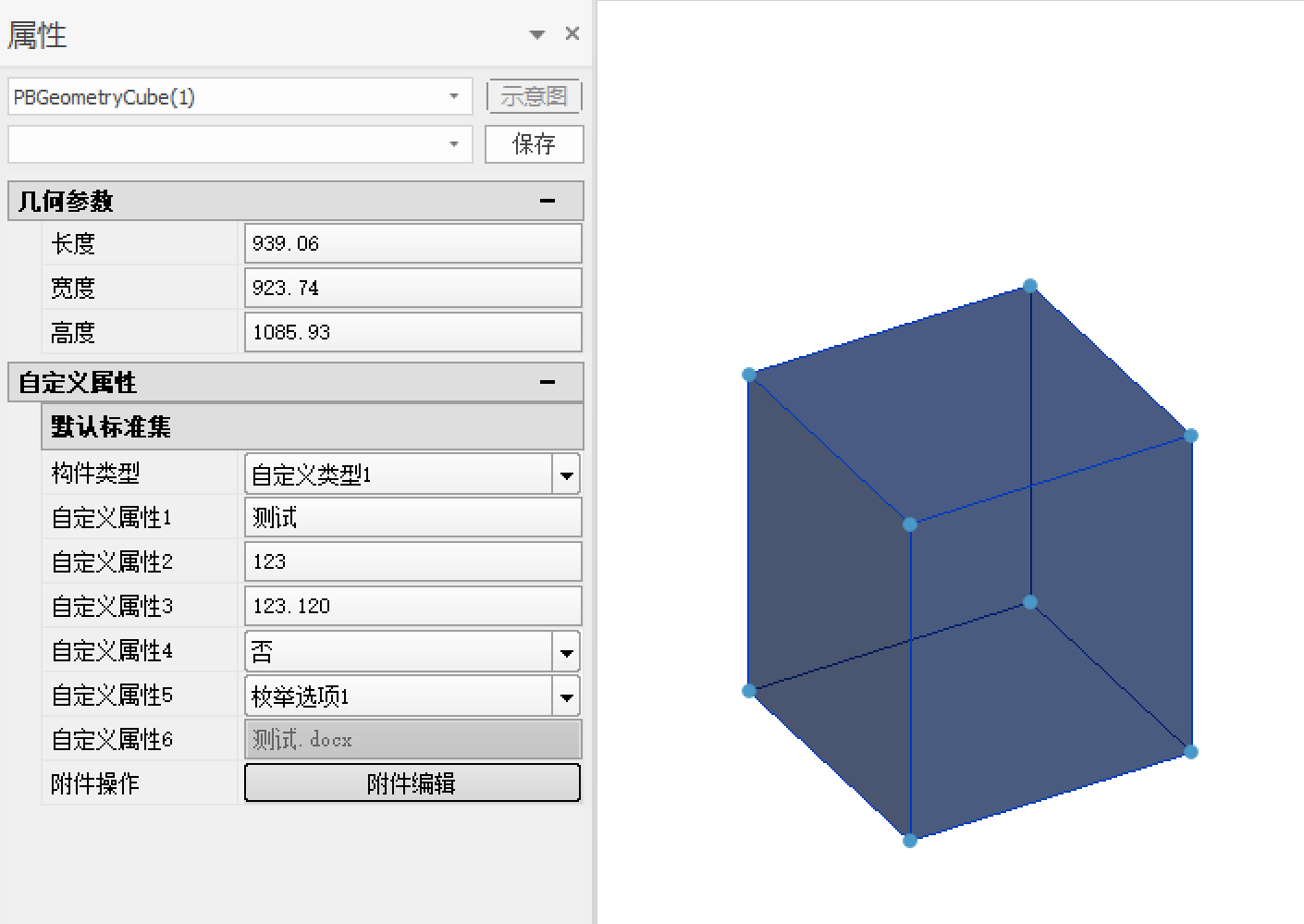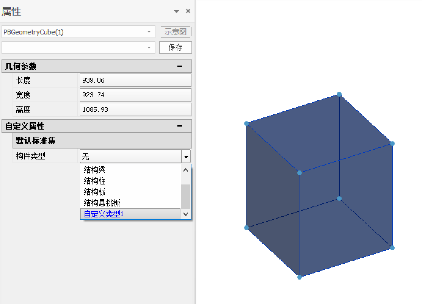 以下图所示关联关系为例,将“自定义类型1”赋予结构专业下由基本建模-立方体工具绘制的几何体上。