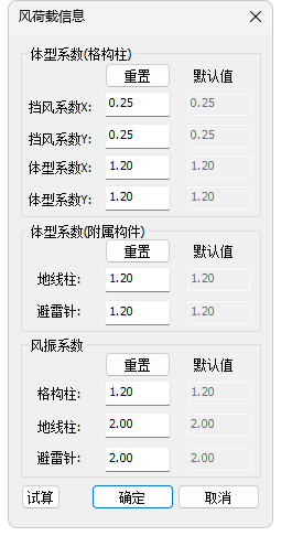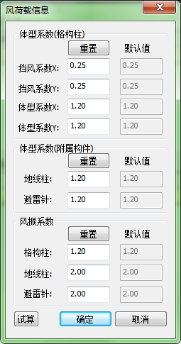 同人字柱风荷载试算功能,格构柱也提供了风荷载的试算功能,如下图,此处不再赘述。