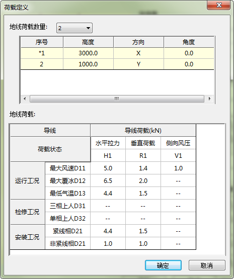 3)导线荷载:同人字柱地线荷载,不再赘述,如下图。