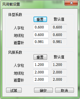(7)风荷载:设置圆管柱体型系数和风振系数,用于后续风荷载标准值计算,支持交互修改输入。