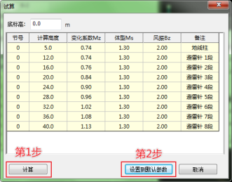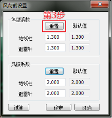 第1步:单击“计算”,可自动生成与风荷载标准值计算相关的各种参数;第2步:再单击“设置到默认参数”命令,将各计算值输出到默认值;第3步:单击“重置”命令,将各计算参数设置到计算用参数,如下图