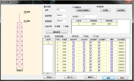 目录 搜索 展开 首页版权与商标说明免责声明第1章 软件功能简介1.1 软件概述1.2 技术依据第2章 参数化建模2.1 创建模型2.1.1 正交轴网2.1.2 构架柱1、人字柱建模2、格构柱建模3、圆管柱建模2.1.3 构架梁1、格构梁建模2、圆管梁建模2.1.4 独立避雷针1、钢管避雷针2、三角形格构避雷针3、四边形格构避雷针2.1.5 构架编辑2.1.6 避雷针编辑2.2 构件编辑2.2.1 截面定义2.2.2 构件删除和构件复制2.3 构件信息2.3.1 材料定义2.3.2 计算长度系数2.4 荷载布置2.4.1 风荷载2.4.2 点线荷载2.4.3 温度作用第3章 约束布置3.1 支座约束3.2 梁单元端部约束3.2.1 一端铰接/两端铰接/两端刚接/删除一端铰接3.2.2 梁端约束第4章 计算分析与结果查看4.1 模型检查4.2 设计参数4.2.1 设计信息4.2.2 地震计算信息4.2.3 工况组合4.3 线性计算4.3.1 线性计算4.3.2 模态分析4.4 计算结果查询4.4.1 位移显示4.4.2 内力显示4.4.3 支座反力显示4.4.4 振型结果显示4.4.5 内力表格4.4.6 构件验算查询4.4.7 生成计算书4.5 基础设计第5章 节点设计5.1 连接设计5.1.1 连接参数1、通用参数2、人字柱参数3、桁架梁参数4、全圆管格构梁参数5、钢管柱参数6、钢管梁参数7、格构柱参数(主杆角钢)8、地线柱与避雷针参数5.1.2 自动设计5.1.3 补充连接设计1、法兰节点2、角钢分段节点3、挂线点节点4、检修走道5、爬梯5.1.4 基础设计1.使用变电构架的基础设计2.使用跳转PM基础进行基础设计5.2 节点编辑第6章 施工图设计6.1 图纸配置6.2 施工图生成第7章 接力REVIT或ABD技术条件一 抗震设计基本规定1.1 重力荷载代表值1.2 抗震设计调整二 荷载2.1 荷载工况2.2 风荷载2.2.1 风荷载体型系数2.2.2 风压高度变化系数2.2.3 风振系数2.3 荷载效应组合2.3.1 运行工况1、大风工况2、覆冰有风工况3、温度有风工况2.3.2 安装工况2.3.3 检修工况2.3.4 地震作用工况2.3.5 正常使用工况三 连接计算3.1 螺栓连接3.2 焊缝连接3.3 法兰节点3.4 柱脚节点四 基础设计4.1 地基验算4.1.1 基底压力计算4.1.2 修正后的地基承载力特征值计算4.1.3 地基抗震承载力调整4.1.4 基础底面积确定4.2 基础抗拔和抗倾覆稳定验算4.2.1 基础抗拔稳定验算4.2.2 基础抗倾覆稳定验算4.3 基础计算4.3.1 基础高度取值4.3.2 基础冲切验算4.3.3 基础受剪承载力计算4.3.4 基础底板受弯配筋计算 暂无相关搜索结果! 3、四边形格构避雷针 3、四边形格构避雷针 四边形格构避雷针建模参数定义界面,如下图所示。 图2-58 四边形格构避雷针建模对话框 四边形格构避雷针定义信息包括基本信息(名称、底部宽度、底部高度、支座约束)、截面信息、风荷载、地线荷载、是否设置地线柱或避雷针、柱分段信息、模型预览、组装信息等参数。各项参数的含义同“2.1.2 构架柱”一节中的格构柱建模,此处不再赘述。