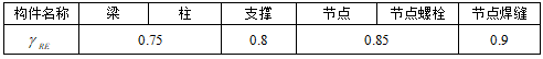 目录 搜索 展开 首页版权与商标说明免责声明第1章 软件功能简介1.1 软件概述1.2 技术依据第2章 参数化建模2.1 创建模型2.1.1 正交轴网2.1.2 构架柱1、人字柱建模2、格构柱建模3、圆管柱建模2.1.3 构架梁1、格构梁建模2、圆管梁建模2.1.4 独立避雷针1、钢管避雷针2、三角形格构避雷针3、四边形格构避雷针2.1.5 构架编辑2.1.6 避雷针编辑2.2 构件编辑2.2.1 截面定义2.2.2 构件删除和构件复制2.3 构件信息2.3.1 材料定义2.3.2 计算长度系数2.4 荷载布置2.4.1 风荷载2.4.2 点线荷载2.4.3 温度作用第3章 约束布置3.1 支座约束3.2 梁单元端部约束3.2.1 一端铰接/两端铰接/两端刚接/删除一端铰接3.2.2 梁端约束第4章 计算分析与结果查看4.1 模型检查4.2 设计参数4.2.1 设计信息4.2.2 地震计算信息4.2.3 工况组合4.3 线性计算4.3.1 线性计算4.3.2 模态分析4.4 计算结果查询4.4.1 位移显示4.4.2 内力显示4.4.3 支座反力显示4.4.4 振型结果显示4.4.5 内力表格4.4.6 构件验算查询4.4.7 生成计算书4.5 基础设计第5章 节点设计5.1 连接设计5.1.1 连接参数1、通用参数2、人字柱参数3、桁架梁参数4、全圆管格构梁参数5、钢管柱参数6、钢管梁参数7、格构柱参数(主杆角钢)8、地线柱与避雷针参数5.1.2 自动设计5.1.3 补充连接设计1、法兰节点2、角钢分段节点3、挂线点节点4、检修走道5、爬梯5.1.4 基础设计1.使用变电构架的基础设计2.使用跳转PM基础进行基础设计5.2 节点编辑第6章 施工图设计6.1 图纸配置6.2 施工图生成第7章 接力REVIT或ABD技术条件一 抗震设计基本规定1.1 重力荷载代表值1.2 抗震设计调整二 荷载2.1 荷载工况2.2 风荷载2.2.1 风荷载体型系数2.2.2 风压高度变化系数2.2.3 风振系数2.3 荷载效应组合2.3.1 运行工况1、大风工况2、覆冰有风工况3、温度有风工况2.3.2 安装工况2.3.3 检修工况2.3.4 地震作用工况2.3.5 正常使用工况三 连接计算3.1 螺栓连接3.2 焊缝连接3.3 法兰节点3.4 柱脚节点四 基础设计4.1 地基验算4.1.1 基底压力计算4.1.2 修正后的地基承载力特征值计算4.1.3 地基抗震承载力调整4.1.4 基础底面积确定4.2 基础抗拔和抗倾覆稳定验算4.2.1 基础抗拔稳定验算4.2.2 基础抗倾覆稳定验算4.3 基础计算4.3.1 基础高度取值4.3.2 基础冲切验算4.3.3 基础受剪承载力计算4.3.4 基础底板受弯配筋计算 暂无相关搜索结果! 1.2 抗震设计调整 1.2 抗震设计调整 抗震设计时,结构构件的承载力按下式调整: 表6-2 构件承载力的抗震调整系数
