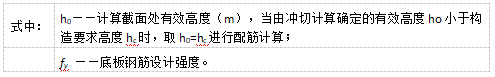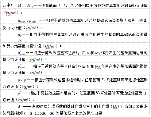 目录 搜索 展开 首页版权与商标说明免责声明第1章 软件功能简介1.1 软件概述1.2 技术依据第2章 参数化建模2.1 创建模型2.1.1 正交轴网2.1.2 构架柱1、人字柱建模2、格构柱建模3、圆管柱建模2.1.3 构架梁1、格构梁建模2、圆管梁建模2.1.4 独立避雷针1、钢管避雷针2、三角形格构避雷针3、四边形格构避雷针2.1.5 构架编辑2.1.6 避雷针编辑2.2 构件编辑2.2.1 截面定义2.2.2 构件删除和构件复制2.3 构件信息2.3.1 材料定义2.3.2 计算长度系数2.4 荷载布置2.4.1 风荷载2.4.2 点线荷载2.4.3 温度作用第3章 约束布置3.1 支座约束3.2 梁单元端部约束3.2.1 一端铰接/两端铰接/两端刚接/删除一端铰接3.2.2 梁端约束第4章 计算分析与结果查看4.1 模型检查4.2 设计参数4.2.1 设计信息4.2.2 地震计算信息4.2.3 工况组合4.3 线性计算4.3.1 线性计算4.3.2 模态分析4.4 计算结果查询4.4.1 位移显示4.4.2 内力显示4.4.3 支座反力显示4.4.4 振型结果显示4.4.5 内力表格4.4.6 构件验算查询4.4.7 生成计算书4.5 基础设计第5章 节点设计5.1 连接设计5.1.1 连接参数1、通用参数2、人字柱参数3、桁架梁参数4、全圆管格构梁参数5、钢管柱参数6、钢管梁参数7、格构柱参数(主杆角钢)8、地线柱与避雷针参数5.1.2 自动设计5.1.3 补充连接设计1、法兰节点2、角钢分段节点3、挂线点节点4、检修走道5、爬梯5.1.4 基础设计1.使用变电构架的基础设计2.使用跳转PM基础进行基础设计5.2 节点编辑第6章 施工图设计6.1 图纸配置6.2 施工图生成第7章 接力REVIT或ABD技术条件一 抗震设计基本规定1.1 重力荷载代表值1.2 抗震设计调整二 荷载2.1 荷载工况2.2 风荷载2.2.1 风荷载体型系数2.2.2 风压高度变化系数2.2.3 风振系数2.3 荷载效应组合2.3.1 运行工况1、大风工况2、覆冰有风工况3、温度有风工况2.3.2 安装工况2.3.3 检修工况2.3.4 地震作用工况2.3.5 正常使用工况三 连接计算3.1 螺栓连接3.2 焊缝连接3.3 法兰节点3.4 柱脚节点四 基础设计4.1 地基验算4.1.1 基底压力计算4.1.2 修正后的地基承载力特征值计算4.1.3 地基抗震承载力调整4.1.4 基础底面积确定4.2 基础抗拔和抗倾覆稳定验算4.2.1 基础抗拔稳定验算4.2.2 基础抗倾覆稳定验算4.3 基础计算4.3.1 基础高度取值4.3.2 基础冲切验算4.3.3 基础受剪承载力计算4.3.4 基础底板受弯配筋计算 暂无相关搜索结果! 4.3.4 基础底板受弯配筋计算 4.3.4 基础底板受弯配筋计算 程序根据基础冲切计算及基础台阶的构造高度(取其大值)作基础底板受弯配筋计算。 轴心荷载作用下底板受弯计算: 单向偏心荷载作用下底板受弯计算: 双向偏心荷载作用下底板受弯计算: 长向底板配筋计算: 短向底板配筋计算: