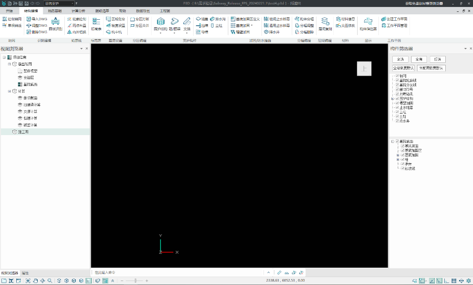 程序界面和BIMBase平台上其他功能模块界面基本相同,软件界面总体布局如图 1.3-1所示。用户操作界面为Windows窗口界面,用户可以随意改变窗口的大小、位置和形状,并可在软件运行过程中运行Windows 桌面上的其他程序,实现多进程工作方式。用户菜单采用流行的Ribbon菜单,形象直观。