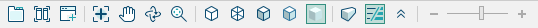 模型视口左下部为模型显示调整按钮,可对程序中的模型显示进行调整,如图 1.3-5所示,从左至右依次为:页签模式、多窗口平铺、新建视口、全充满显示、平移视图、三维动态观察、局部放大、隐藏线模式、线框模式、着色模式带轮廓、着色模式原始色、着色模式无轮廓、正交模式、隐藏线宽、上拉菜单(坐标系、识图盒)和光照亮度调整。