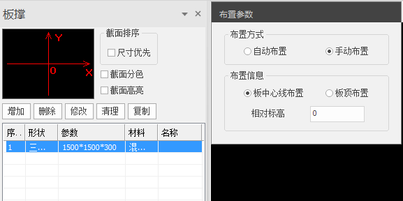 布置时,可选择以板撑中心线或以板撑顶面的标高布置,相对标高是相对于支锚层的标高,输入正值表示高于支锚层标高,负值表示低于支锚层标高。